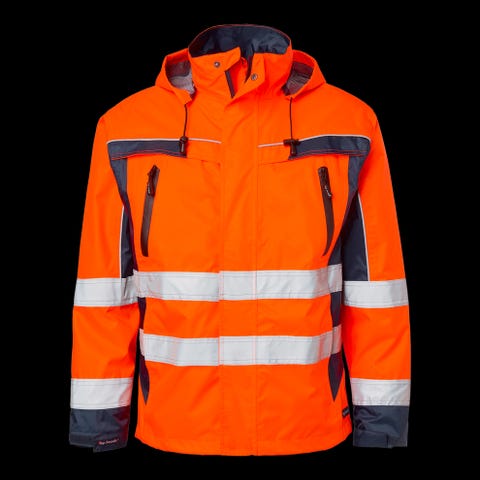 Tuulen- ja vedenpitävä, tehokkaasti hengittävä toppatakki, jossa on teipatut saumat. Tikattu vuori ja selkäosa materiaalia, joka lämmittää ja takaa hyvän tuuletuksen. Vedenpitävällä vetoketjulla suljettava rintatasku. Yksi sisätasku/puhelintasku. Iso Napoleon-tasku/lisätasku etulistan alla. Irrotettava vuorillinen huppu. Heijastimet parantavat näkyvyyttä. Säädettävät hihansuut ja helma. Hihansuiden resoreissa peukalonreiät. Vesipilari 10 000 mm, hengittävyys 5000 g/m². EN 343 luokka 3.