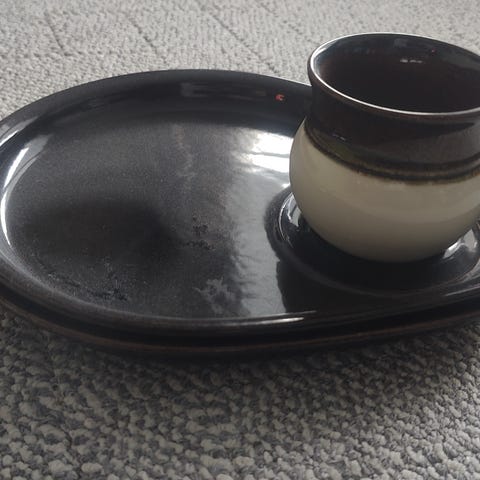 Kaksi lautasta ja muki