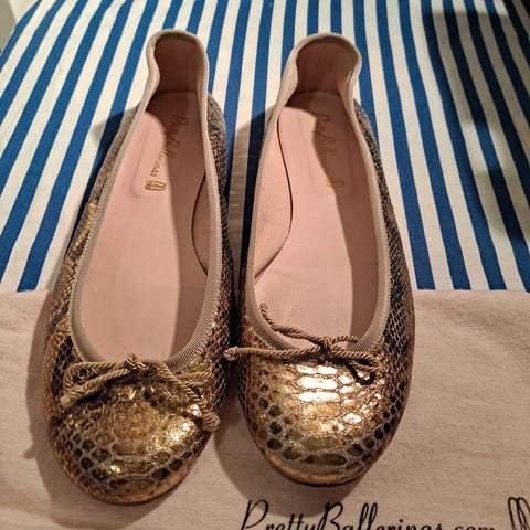 Kärjessä tekokiiltonahkapäällyste sekä rusetti. Joustava reuna ympäriinsä. Mukava, pehmustettu sisäpohja. Ballerinat on helppo taittaa kahtia, jolloin ne vievät vain vähän tilaa laukussa. Ulkopohja kumia. Mukana säilytyspussukka.