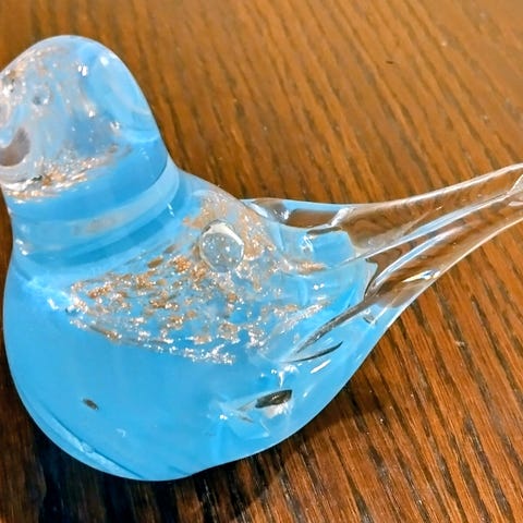 Kaunis sininen design lasilintu hopeapilkuin, halkaisija n.10cm. Hinta 18 eur + postikulut!