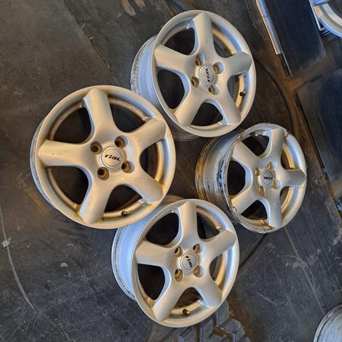 Mille Miglia 4x100 6,5x15" ET35 kr. 60,1mm suorat vanteet. 185/55R15 86T Linglong Wintergrip nastarenkaat, pintaa noin 8-9mm DOT19, nastat ok.