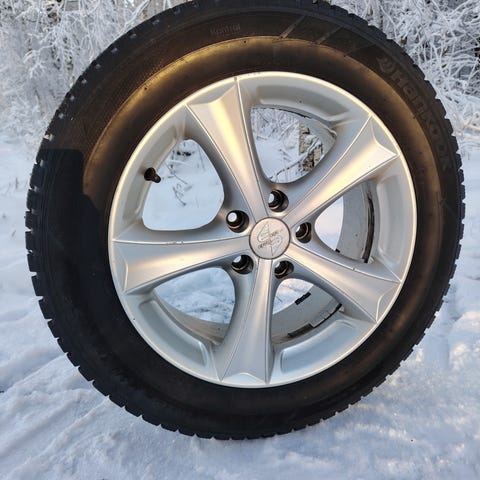 Vanteet ovat suorat, maalipinnassa sanomista, näkee kuvista, täysin käyttökelpoiset. 5x108 7x16" ET50 kr. 63,4mm. Goodyear UG Ice Arctic 205/60R16 96T DOT16, pintaa noin 8-9mm (uusi 10mm), nastat paikoillaan. Tasapainotus juuri tarkistettu.