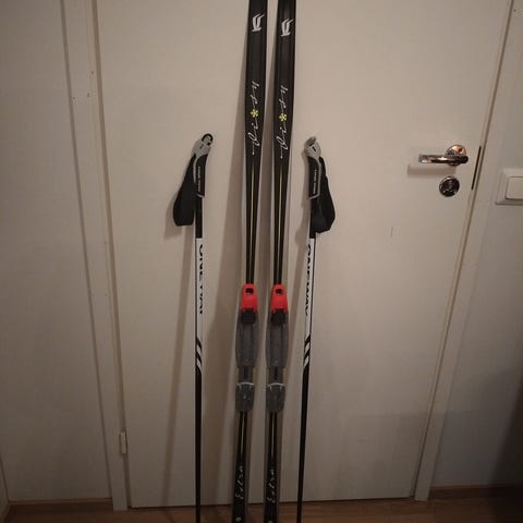 Myydään 160cm sukset ja siihen sopivat sauvat. Sauvat sopivan pituiset mm. 157cm henkilölle. En mitannut sauvoja, mut arvioin 110cm. Suksissa SNS siteet. Suksia on käytetty varmaan pari kolme kertaa.