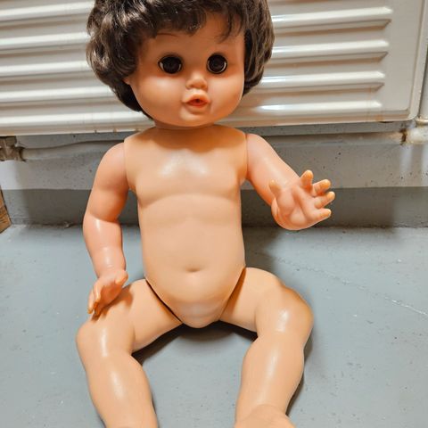 Vanha suorajalkainen Daisy nukke. Oikean käden sormia hieman leikattu.