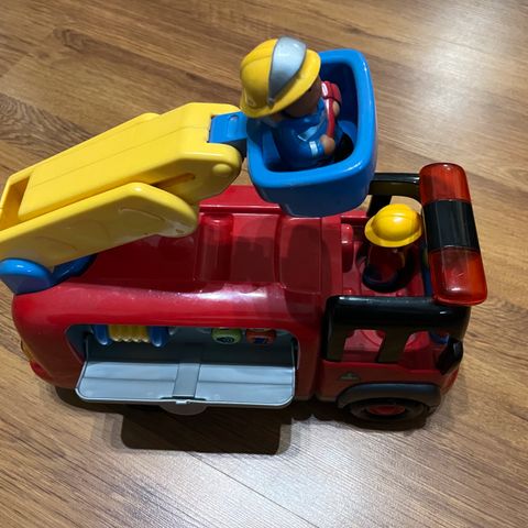 Tästä klassikko uuteen kotiin! Iso puinen paloauto, jonka katon ja sivun saa avattua. Palomiehet mahtuu kyytiin. Leikeissä on tästä joitain osia hävinnyt, mutta mielestäni tämä toimii hyvin tehtävässään ja on kaunis sisustuselementtikin. Pihjassa on joku numerointi, liekkö jotain keräilysarjaa.