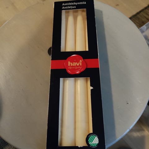 Kotimaiset kynttilät suoraan 1970-luvulta. Omassa pakkauksessaan pidetty tähän päivään asti, Juhavan tarratkin paikoillaan. Sarpaneva desing. Kynttilän korkeus 7cm. Alkuperäinen pakkaus täysin ehjä ja siisti. Siinä teksti KIOTO.