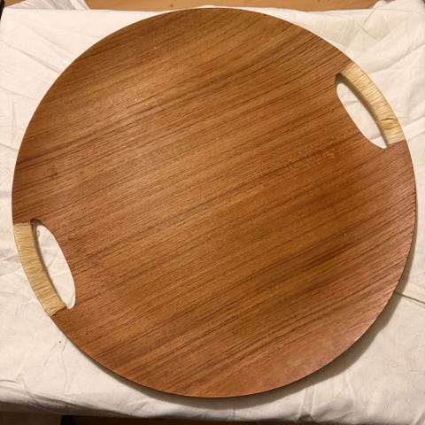 Tarjotin, umpipuu 7. Vanha iso pyöreä teak-tarjotin