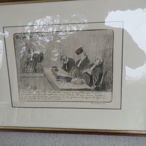 Camille Pissarron printti Red roofs. Työn korkeus on 40 cm ja leveys 50 cm. Kehys 48 X 58 cm.