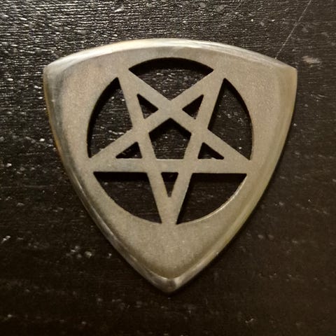 Myydään titaanista valmistettu dunlopin John Petruccin Trinity mallista mukailtu 2.75mm paksu plektra.