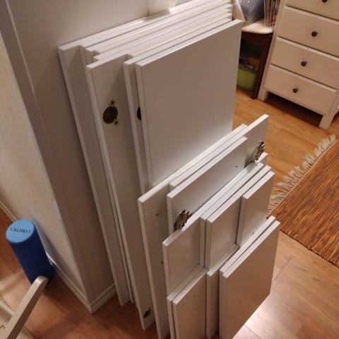 Uudet saranat jousilla, 4 kpl. Kääntymiskulma on 90 astetta, alle 30 kg oven paino. Mitat ovat 89x59x29 mm. 10 euroa pari, kaikki 4 kpl 12 euroa.