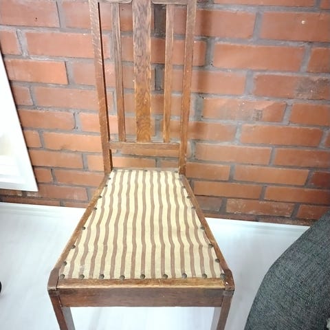 Myydään vanha puinen tuoli. Tukeva. Juuri uudelleen verhoiltu laadukkaalla, vettähylkivällä, konepestävällä ja irroitettavalla sunbrella kankaalla.