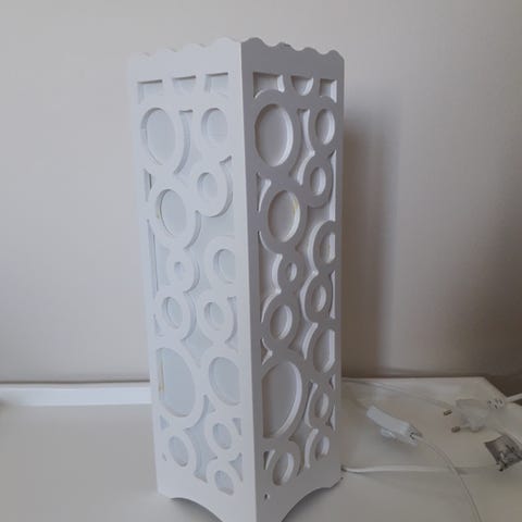 Violetti pöytävalaisin. Lampussa on säätö, voi siirtää alemmaksi ja ylemmäksi. Lamppu pelaa, poltin paikoillaan. Jalkaosassa käytönjälkiä. Tuonti Siilinjärvelle ja Kuopioon mahdollinen.