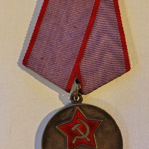 The Medal "Veteran of Labour" was awarded to workers for many years of hard work in the national economy, sciences, culture, education, healthcare, government agencies and public organizations.The medal was awarded to workers, farmers and employees in recognition of their lifelong labour on reaching the seniority required for a long-service pension or retirement age.Decree of the Presidium of the Supreme Soviet of the USSR number 5822-IX of June 8, 1977[3] added the rank and file and the officers of the Ministry of Internal Affairs as potential recipients under the same award criteria as the labourers mentioned in the August 12, 1983 decree.