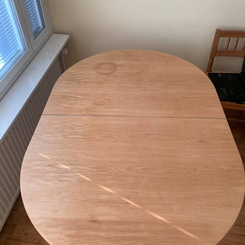 Toinen penkki puuttu kuvassa, koska en tarvi sen, mutta tein erisen kuva, koska se on ullakkossa. Ne pieni puu osat mikä kuule penkille puutu, mutta on helppo saada tai tehdä uusi. Pöytä osat ovat ihan kunnossa.