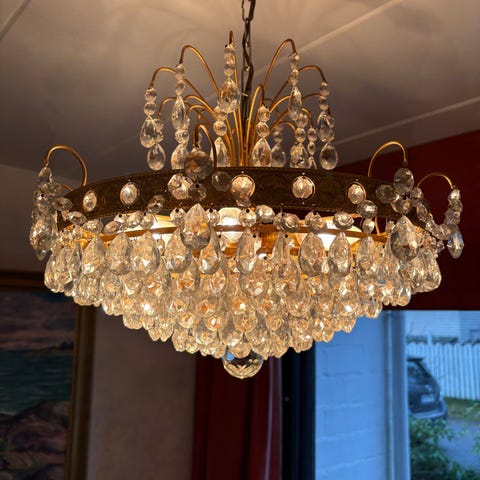 Myydään kaksi kattokruunu, kuulu saamaan sarjan. Isompin leveys on noin 50 cm ja pienempi on noin 30cm. Siistiä, joku helmi ehkä puuttuu. Voin myös myydä erikseen.