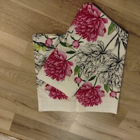 - Verhokapan korkeus 49cm ja pituus 270cm, ollut 160cm leveässä ikkunassa. Ylälaidassa 5cm kuja verhotangolle. Voi ripustaa myös verhonipsuilla. Kangas pesty ja silitetty.