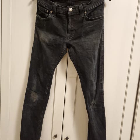 Selling a pair of Nudie Long John denim in 30 W x 32 (length has been shortened) from 34 L. Jeans are used (see pics for wear) - in black colourway.