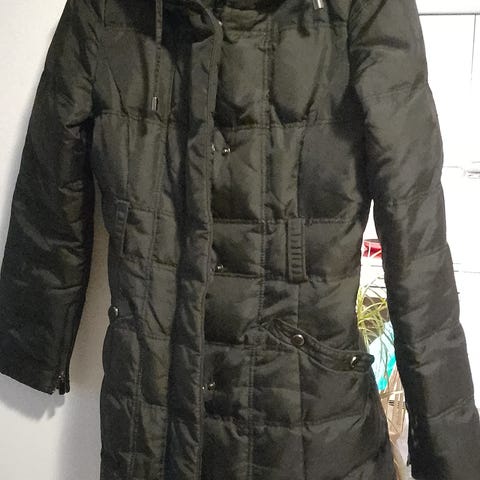 Zara untuvaparka koko M. Väri harmaanvalkoinen. Vyötäröllä kiristysmahdollisuus, hupussa irrotettava karva. Vähällä käytöllä ollut, hyvä kunto. Yksi tumma läikkä taskussa ja olkapäässä, näistä kuvat.