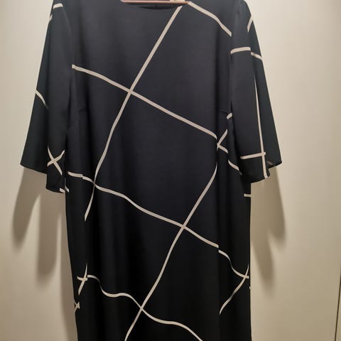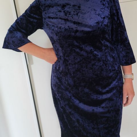 Hihaton, suoralinjainen Sti-mekko, vetoketju niskassa, kai-kai-mitta 52cm, niska-helmapituus 92 cm