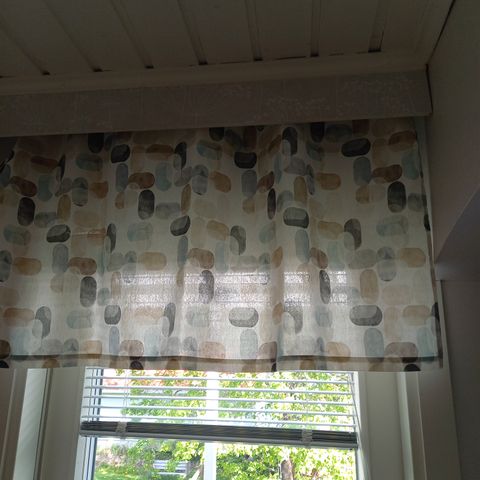 Yhden verhokapan leveys 280 cm ja korkeus 60 cm. Säädettävät rypytysnauhat. Kangas on ulkokäyttöön soveltuvaa. Pesun jälkeen verhokapat silitettävä, jotta veden- ja homeenkestävyys säilyy. Soveltuvat myös sisäkäyttöön.