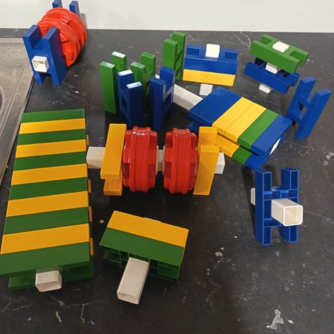 Hyväkuntoiset, 70- tai 80-luvun palikat. Merkistä ei tietoa, todennäköisesti DDR:n valmistama.
