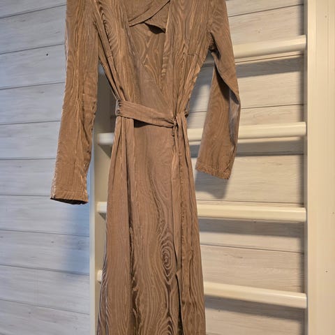 Halo from North mekko koko 40. Pituus 90cm ja ka-ka 54cm. Menee M ja L- koolle. Luonnonvalkoinen. Miellyttävä materiaali, ei jousta. Upeat hihansuut ja sivuilla taskut. Kerran pikaisesti pidetty. Muuten uudenveroinen kunto mutta ylhäällä pari huomaamatonta pistettä jotka jääneet rintaneulasta. Nouto Hki keskusta