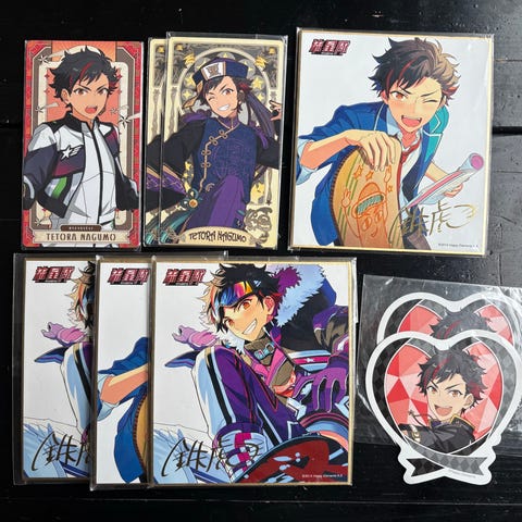 Melko isoja pahvisia KHR hahmokortteja. Tsuna, Giotto, Mukuro ja Hibari mukana. Kaikki yhdessä 6e, en mielelläni myy yksittäin. Menevät kirjeessä, joten postikulut vain postimerkin verran.