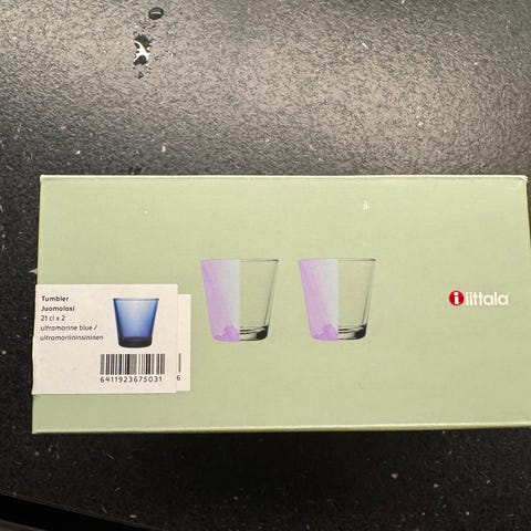 Yksi laatikko, kaksi lasia, yhteensä 15euroa