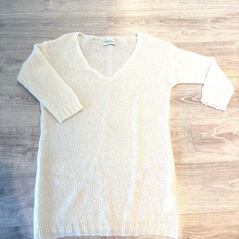 Vaalea beige, pehmeä onesize neule, melko reilua kokoa, pidempi malli.