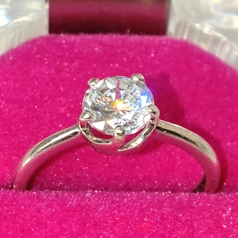 Hopeinen sormus koko 16 . Renkaan takaosassa on naarmuja. (Rodium -päällystetty)