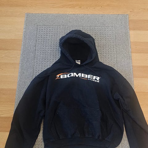 Orginal Bomber huppari. Unisex malli, kokolapussa L - naisten L, miesten M mielestäni. Kysele tarvittaessa mittoja varmistaaksesi sopivuus. Kelpo kuntoinen laatuhuppari. Kulumat esim. hupparin valkoisessa painatuksesssa eivät ole käytöstä tulleita kulumia vaan painatuksessa jo olevia. Postitus ok.