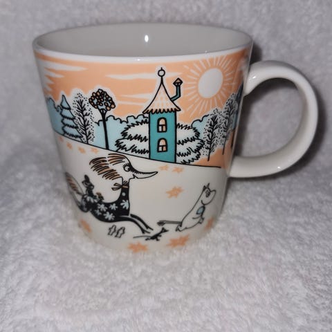 Käyttämätön muumimuki Valley Japani. Tarrallinen.
