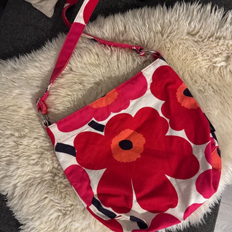Marimekon mustavihreävalkoinen Veronika Pieni Unikko käsilaukku. Uusi, käyttämätön!