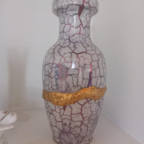 Maljakko. Ruusukuvio molemmin puolin. koko: leveys 7.5 cm ja korkeus n. 10cm Kullalla koristeltu suuaukko ja pohjanreunus-