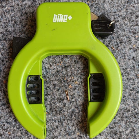 Myydään kuvissa näkyvä ehjä Bike Parts merkkinen polkupyörän lukko ja siihen kuuluva avain. Polkupyörän lukon saa avaimella helposti avattua ja laitettua kiinni.