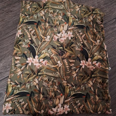 2 x n metrin täysleveä trikoo sekä n 1 m ribbi. Messuilta ostettu. Ei eläimiä. Pakettina 40e
