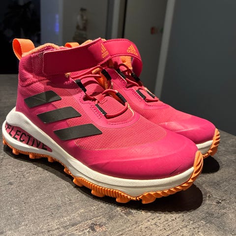 Adidaksen kerran ulkona käytetyt talvikengät, tahrat löhtee pyyhkäisemällä pois, koska olleet kenkäkaapissa muiden seassa. Koko 34.