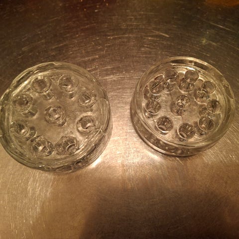 Kukkapidike vanhaa lasia on virheetön, kirkas , apu kukka-asetelmiin. Koko 8 cm x 2,5 cm. 9-reikäinen. ( Sopii myös kynille.) Näitä löytyy kaksikin kappaletta. Yksi kpl 10e, mutta kaksi kpl yhteensä 15e.