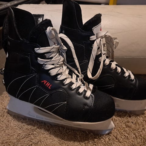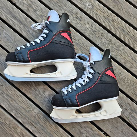 Myydään hyväkuntoiset luistimet, NHL. Koko 44, sisämitta 28,5cm. Suojukset kuuluvat hintaan.