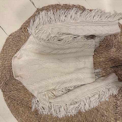 Myydään H&M valkoinen, hyväkuntoinen palmikkoneule koossa XS, sopii noin XS-S -kokoiselle. Myös selkäpuolella kaunis palmikkokuvio. Neule on materiaaliltaan 60 % puuvillaa ja 40 % akryyliä.