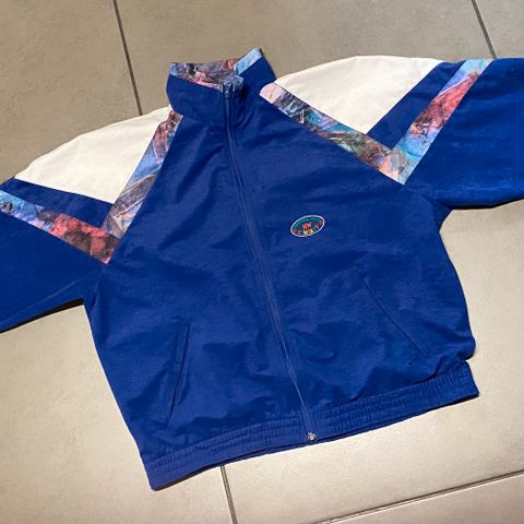 Tummansininen ja punainen vuori. Kauluksen sisäpuoli samettia. Sivutaskut, joissa vetoketjut. Edessä vetoketju, joka piilossa käänteen alla. Hihansuussa tarrakiinnitys. Ohut torppaus . Takana yläosassa tere, joka heijastava. Sisätasku, jossa vetoketju.