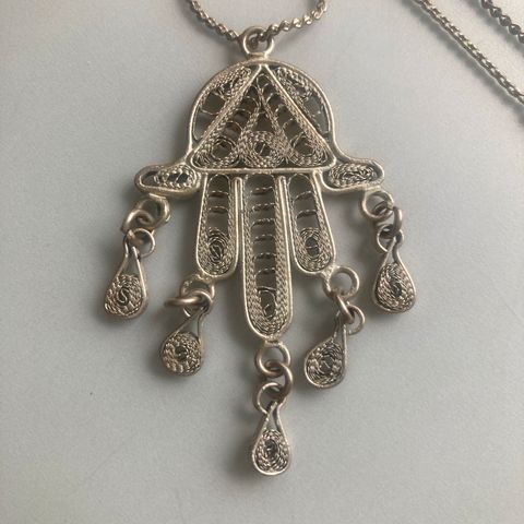 Kaulakoru on Fatiman käsi. 80 cm pitkä . Metalli.