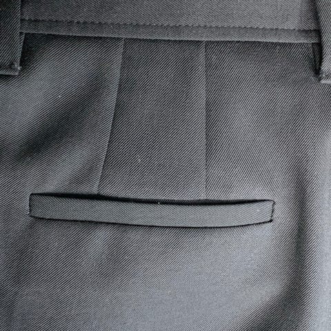 Ohuet housut joissa joustava vyötärö.Edessä vetoketju taskut, takana piilotasku.Mitat; vyötärö venytettynä 55cm haaralahje 80cm. Materiaali 100% polyesteri