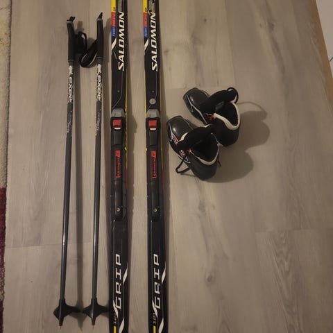 Salomon hiihtopaketti, sukset, sauvat ja monot koko 37 , hyväkuntoiset