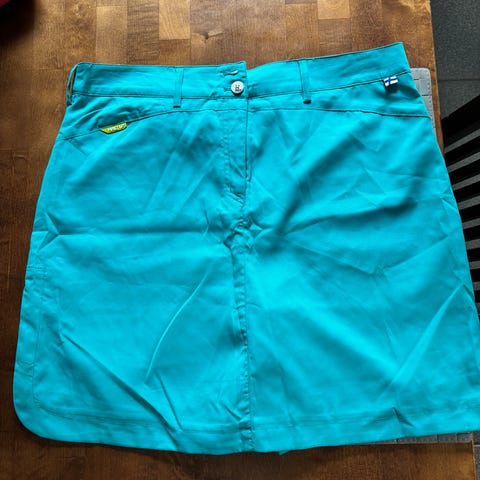 Myyn Daily Sports -merkkisen uudenveroisen golf/vapaa-ajan hameen, jonka koko on 44 ja pituus 56 cm. Hameessa kaksi taskua edessä ja takana sekä shortsiosa hameen sisällä. Materiaali on 97% puuvillaa ja 3% spandexia. Hameen väri on sininen.