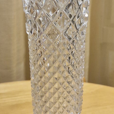 Vanha kristallimaljakko. Halkaisija 10cm korkeus 14,5cm.