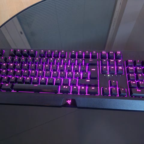 Hyvä mekaaninen näppäimistö, jossa on monia näppäintaustavalovaihtoehtoja. Siinä on vihreät kytkimet. Kuin uusi