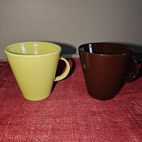 Indiskan 2 kpl isoja mukeja, voi käyttää myös kukkapurkkina. Nämä olleet kaapissa koristeena.
