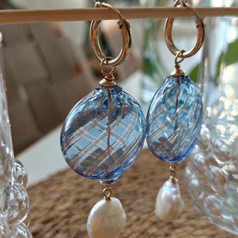 Korvarenkaissa 14 karaatin kultaus + makean vedet helmet.