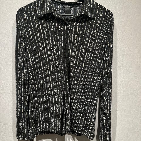 Musta paita valkoisilla pienillä palloilla. Kauniisti laskeutuva kaulus. Puolipitkät hihat. Ihana ohut paita. Hyväkuntoinen. Koko L. Hae pois Helsingin Kalliosta. Voin myös postittaa.